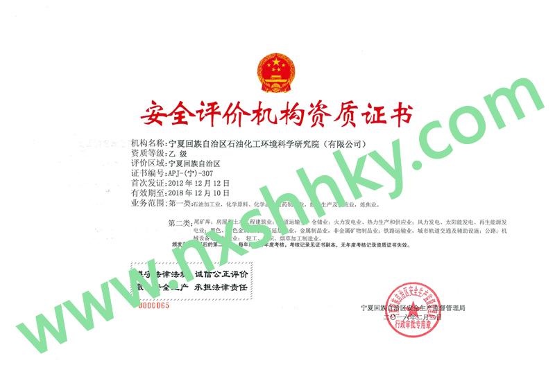 安全評價機(jī)構(gòu)資質(zhì)證書