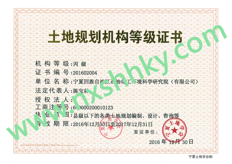 土地規(guī)劃機(jī)構(gòu)等級證書